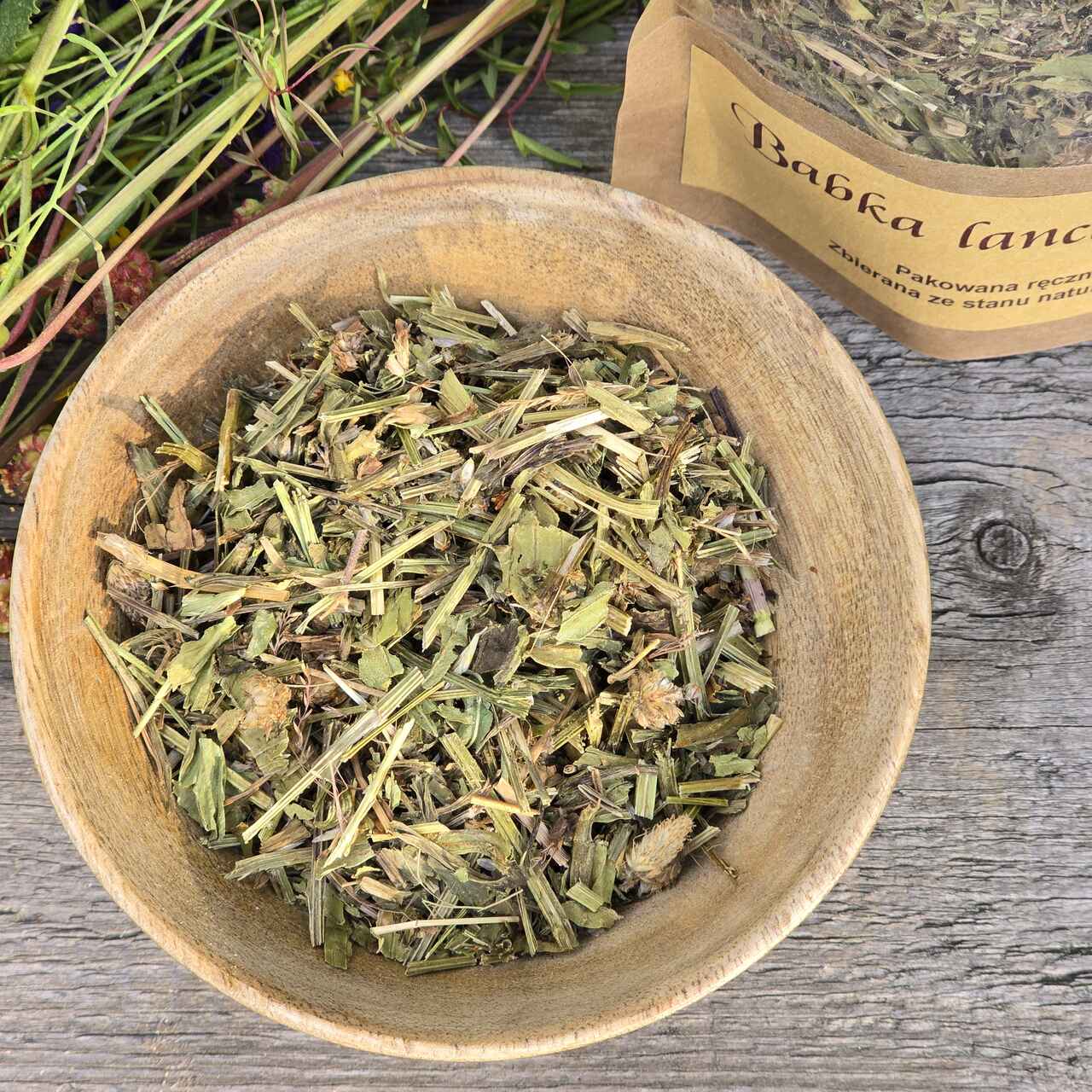 Babka lancetowata niesterylizowana. Opakowanie wielokrotnego użytku zawiera 50g roślin. Data przydatności do spożycia: 10.03.2027