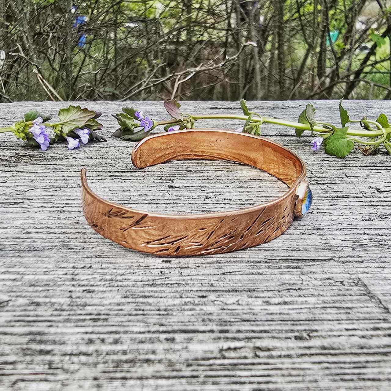 Bransoletka wykonana ręcznie z miedzi. Biżuteria miedziana noszona w bezpośrednim kontakcie ze skórą ma szereg właściwości zdrowotnych. Pomaga w likwidowaniu stanów zapalnych stawów, pomaga w leczeniu bólów stawów. Przynosi ulgę w dolegliwościach reumatycznych. Dodatkowo działa na przyśpieszenie metabolizmu glukozy i cholesterolu. Pomaga w regeneracji organizmu i zasypianiu. Miedź wchłania się przez skórę dlatego nie powinny jej nosić kobiet w ciąży oraz osoby z chorobami serca.