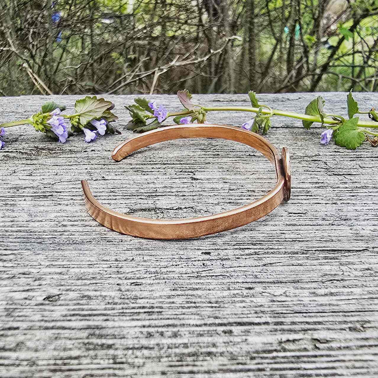 Bransoletka wykonana ręcznie z miedzi. Biżuteria miedziana noszona w bezpośrednim kontakcie ze skórą ma szereg właściwości zdrowotnych. Pomaga w likwidowaniu stanów zapalnych stawów, pomaga w leczeniu bólów stawów. Przynosi ulgę w dolegliwościach reumatycznych. Dodatkowo działa na przyśpieszenie metabolizmu glukozy i cholesterolu. Pomaga w regeneracji organizmu i zasypianiu. Miedź wchłania się przez skórę dlatego nie powinny jej nosić kobiet w ciąży oraz osoby z chorobami serca.