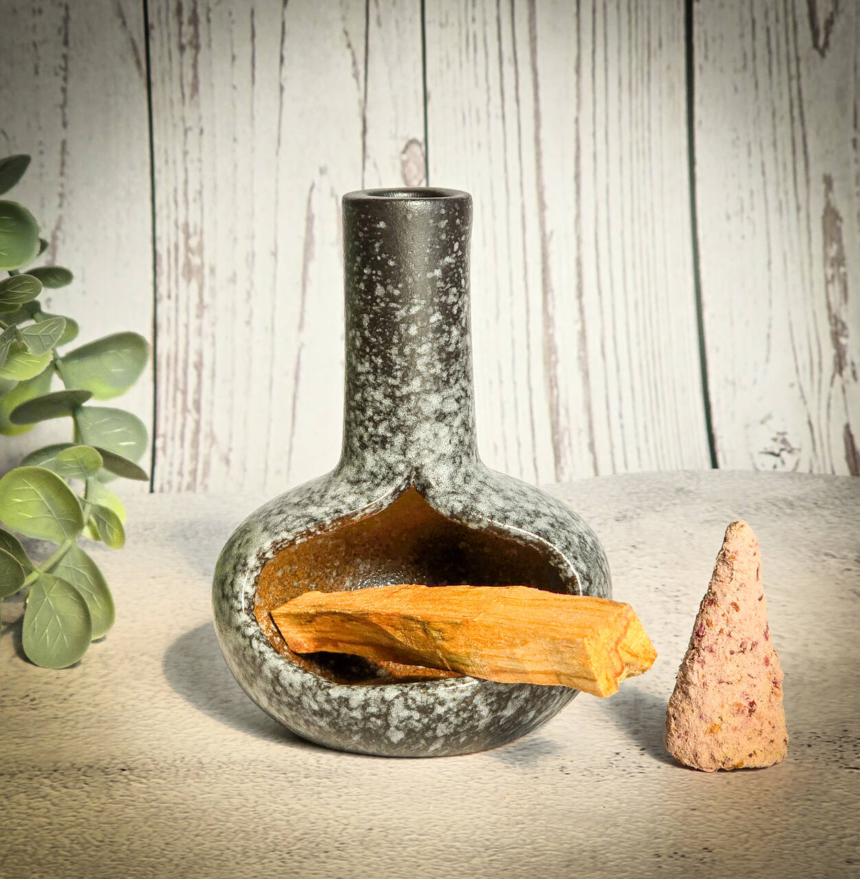 Ceramiczna podstawka w formie kominka. Doskonale sprawdzi się do odkładania Palo Santo, czy mniejszych wiązek, oraz do kadzidełek stożkowych.