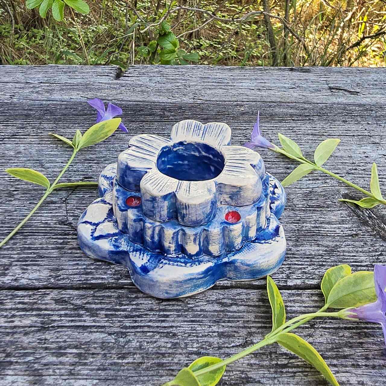 Przepiękny, kolorowy ceramiczny świecznik. Powstał ręcznie. Szkliwiony. Świecznik jest masywny i ciężki, bez problemu utrzyma świeczkę.