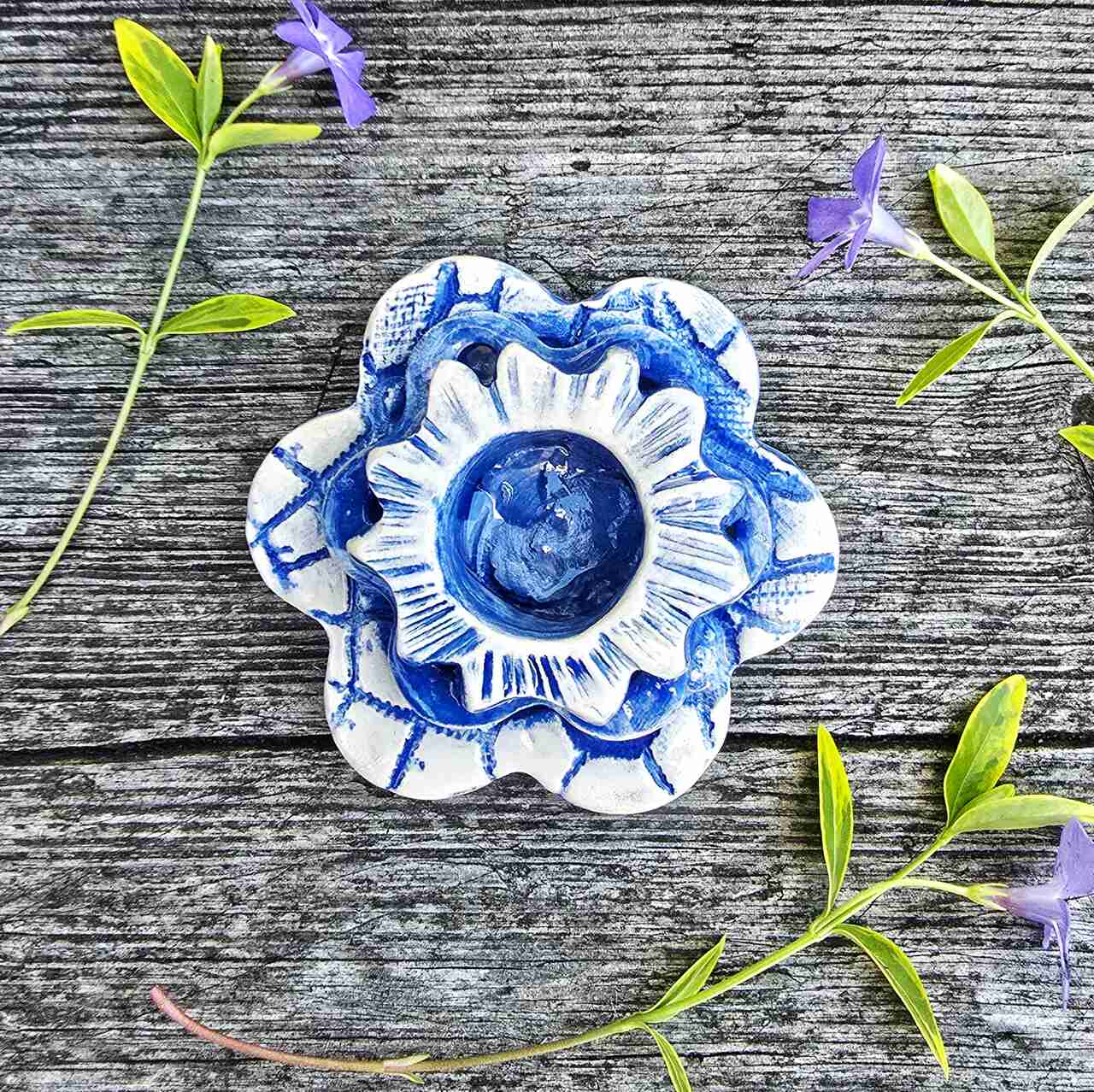 Przepiękny, kolorowy ceramiczny świecznik. Powstał ręcznie. Szkliwiony. Świecznik jest masywny i ciężki, bez problemu utrzyma świeczkę.