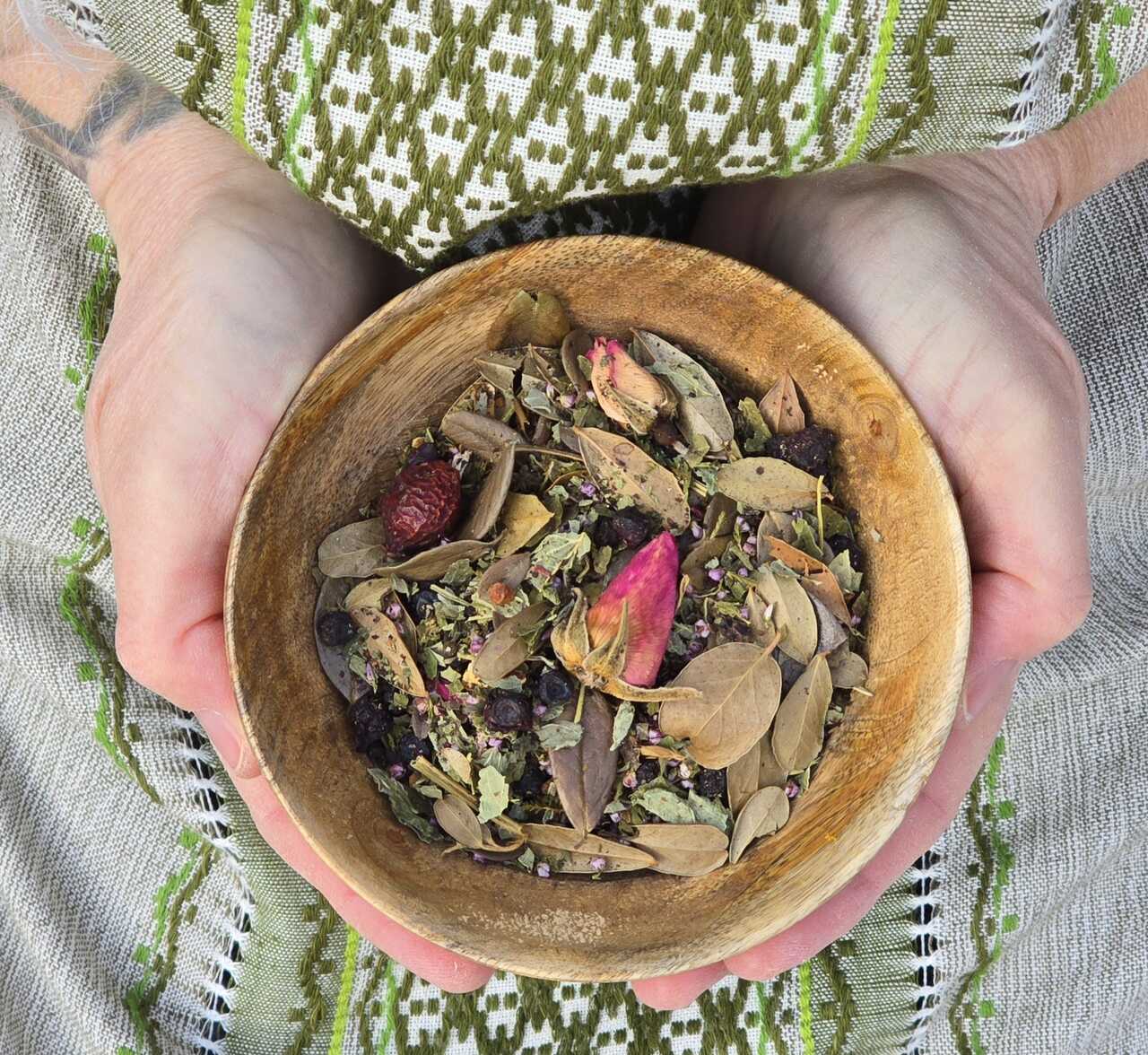 Skład: kwiat wrzosu, liść borówki brusznicy, owoc tarniny, pączek róży, owoc jagody leśnej, melisa, owoc dzikiej róży, hibiskus, skórka pomarańczy