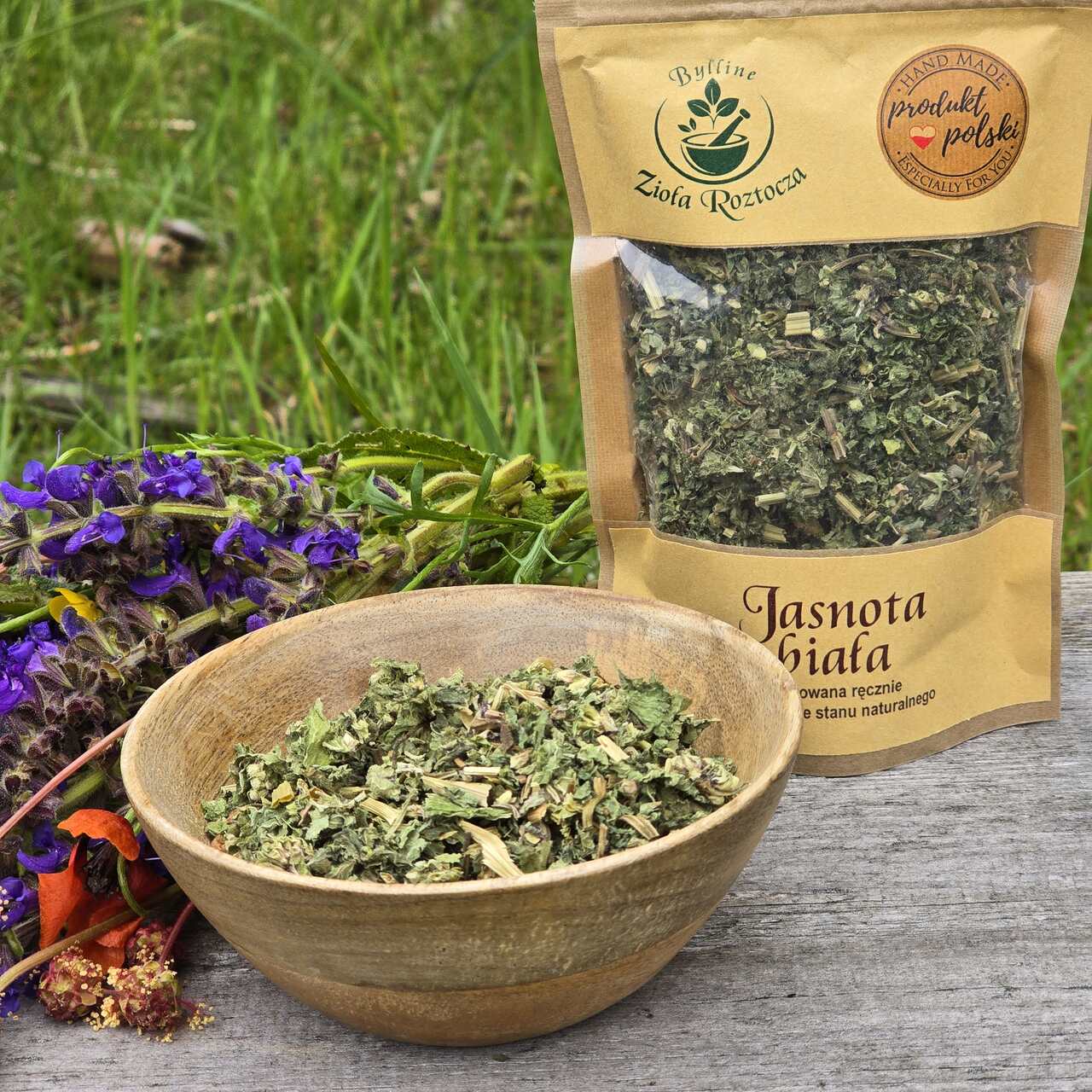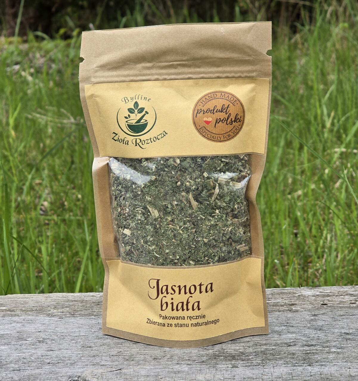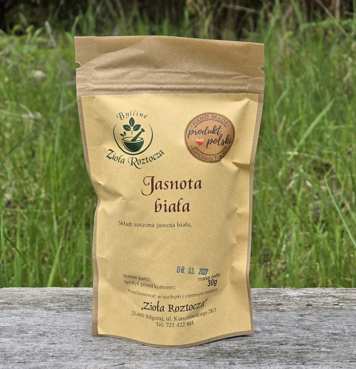 Ziele jasnoty białej niesterylizowane. Opakowanie wielokrotnego użytku zawiera 30g roślin. Data przydatności do spożycia: 10.03.2027