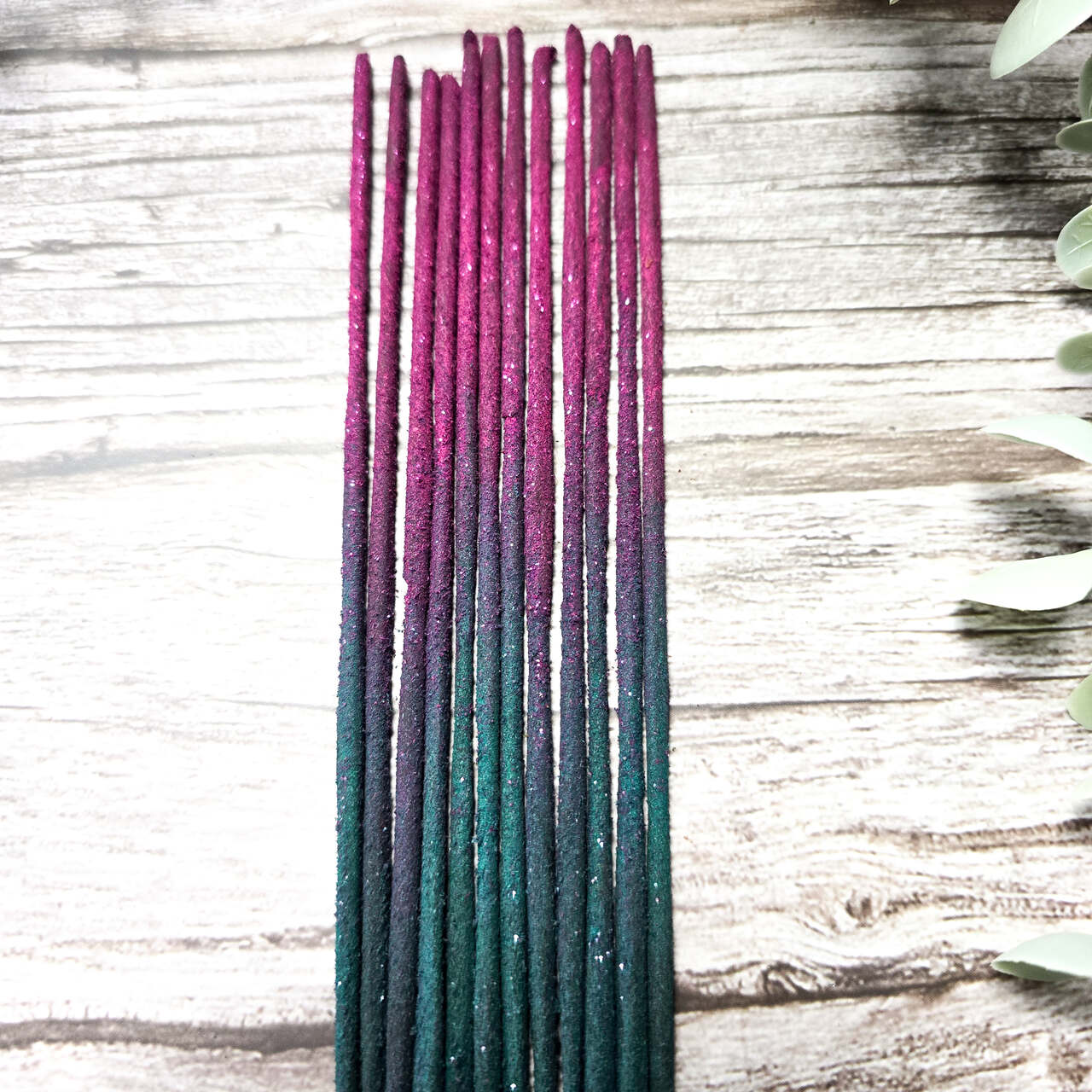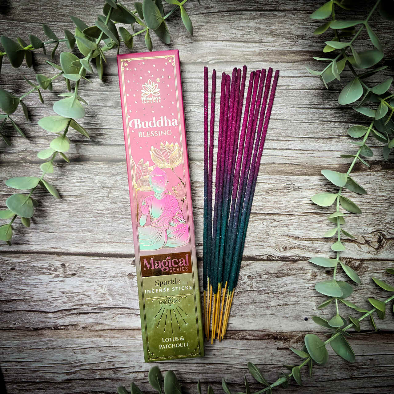 Nowa kolekcja kadzidełek patyczkowych od firmy Himalaya Incense. Kadzidełka z dodatkiem brokatu. Pięknie się mienią i wyjątkowo atrakcyjnie wyglądają. W każdym opakowaniu znajduje się 12 sztuk patyczków. Z których każdy pali się 30-40 minut