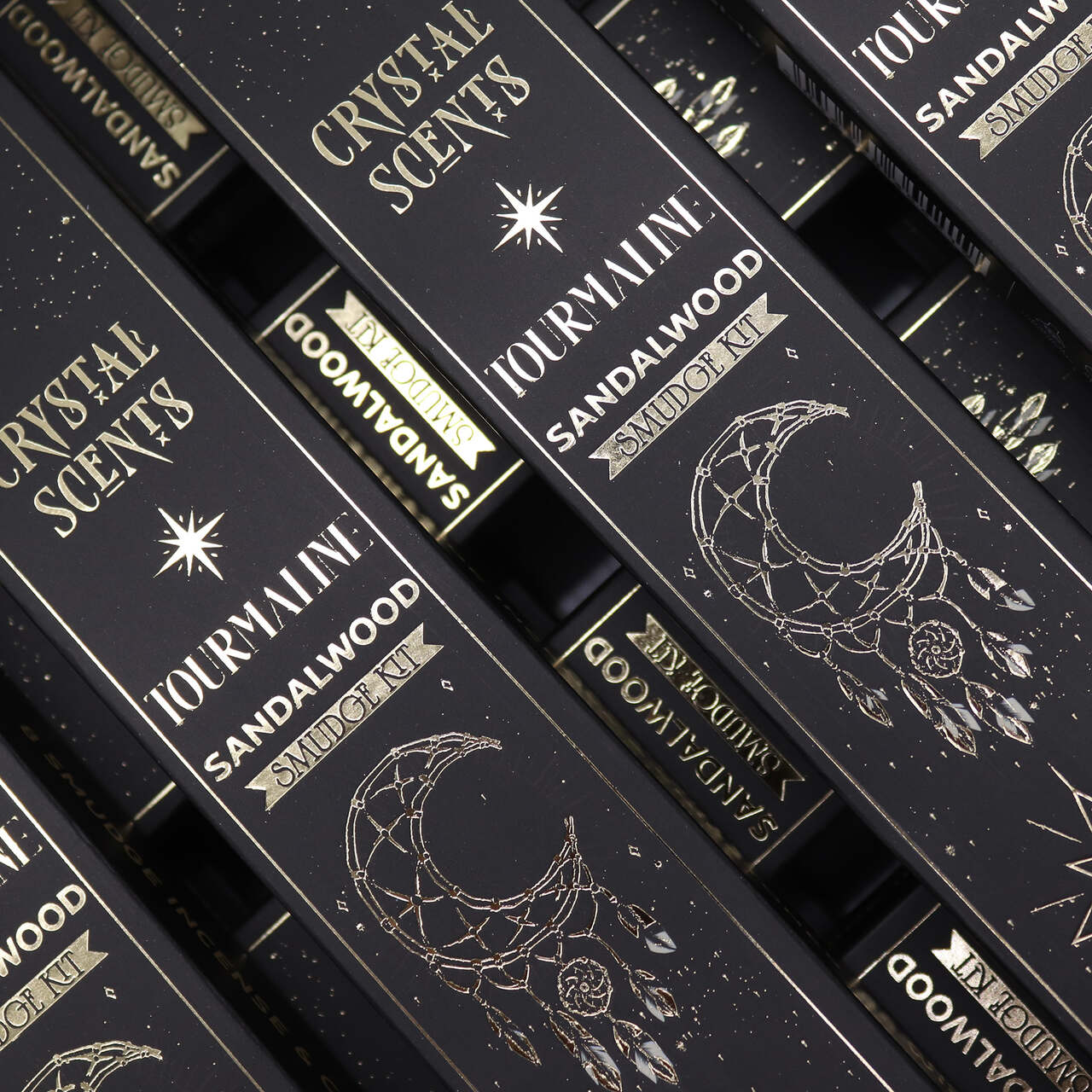 Kryształowe Aromaty o aromacie drzewa sandałowego łączy kojący, drzewny zapach z energetyzującą mocą turmalinu. Każde pudełeczko zawiera 10 ręcznie wykonanych kadzidełek typu smudge oraz jeden kryształ turmalinu, który może pełnić funkcję talizmanu lub być częścią codziennego rytuału.