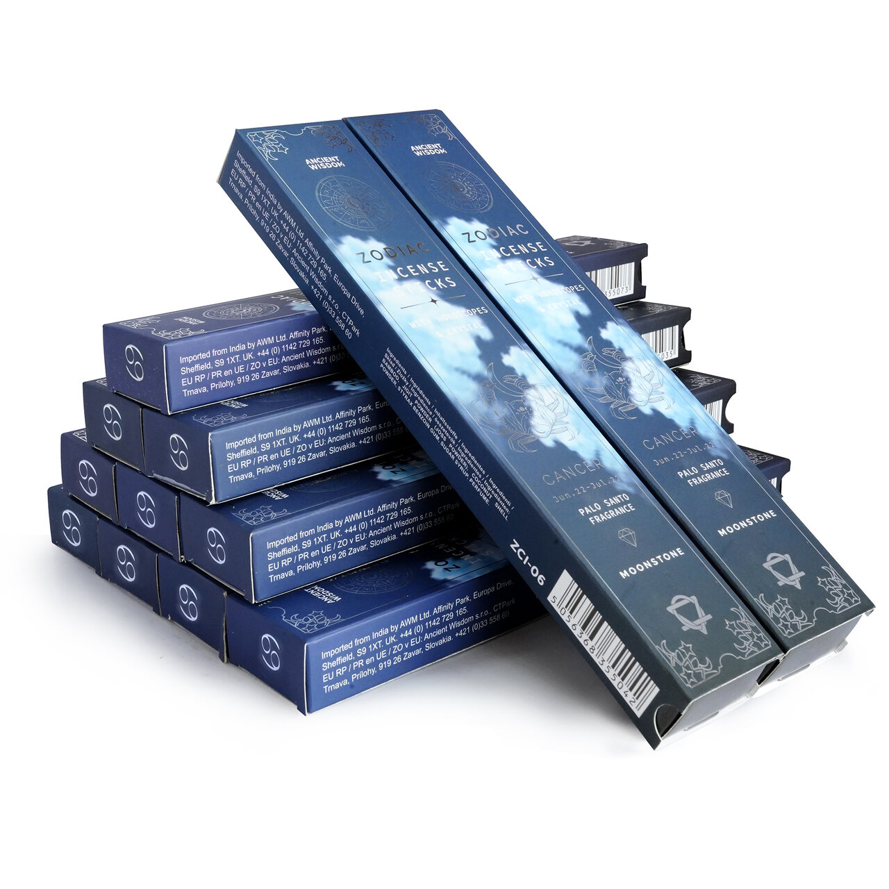 Każde pudełeczko zawiera 20 kadzidełek patyczkowych, 20 horoskopów na ryżowym papierze oraz dopasowany do znaku kamień naturalny. Każde kadzidełko jest połączone z mini horoskopem, co pozwala ci zamienić zwykły moment zapachu w codzienny rytuał. Karteczki z horoskopami są lekkie, symboliczne i wykonane tak, aby można było je spalić razem z kadzidełkiem – przesłanie unosi się wraz z dymem, stając się częścią rytuału.