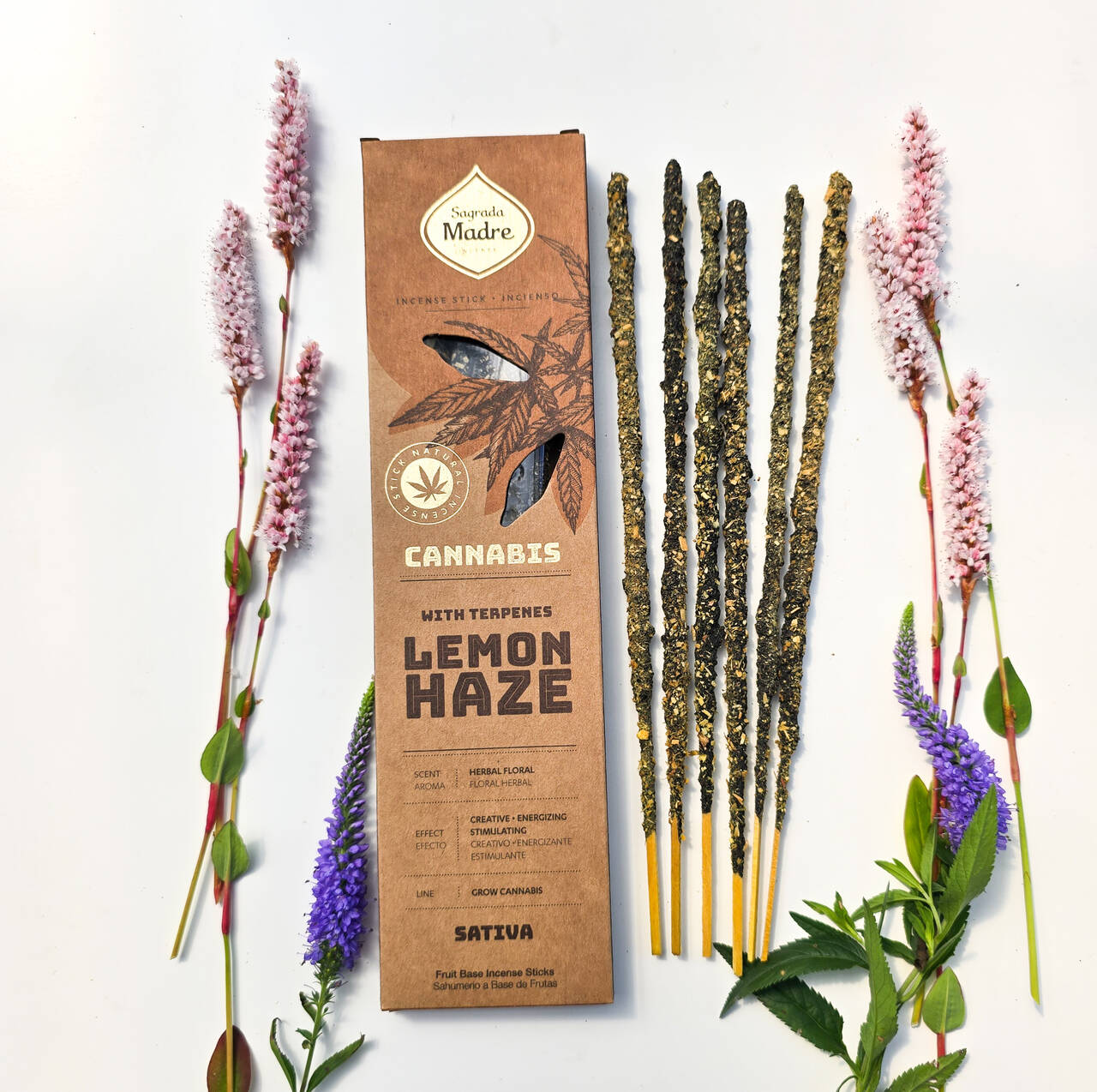 Terpeny są związkami organicznymi występującymi w wielu roślinach, w tym w konopiach indyjskich i są odpowiedzialne za ich wyraźny aromat i smak. Te kadzidła nasycone terpenami ekstrahowanymi  ze szczepu Lemon Haze Sativa, które dodają temu kadzidłu nuty ziołowe i cytrusowe. Ich urzekający i energetyzujący aromat obudzi twojego twórczego ducha, prowadząc do stanu spełnienia i osobistej duchowej ekspansji.