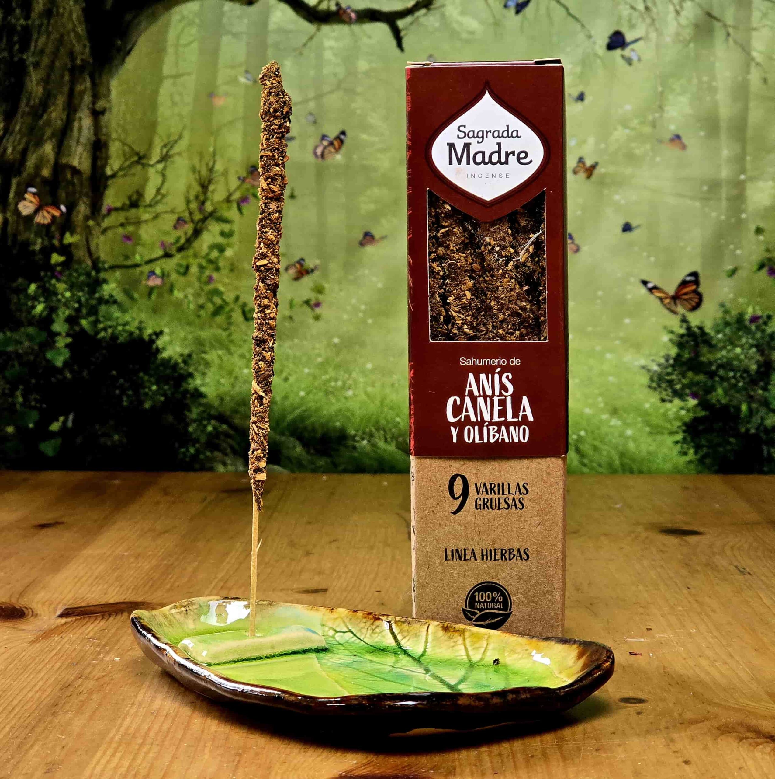 Kadzidła Sagrada Madre premium. Składają się z  najwyższej jakości składników naturalnych, żywic i rozdrobnionych roślin. Grube i duże. Kadzidła zawierają całe kawałki żywic oraz powstają ręcznie. Czas palenia jednego kadzidła 1 godziny. Opakowanie zawiera 9 sztuk.