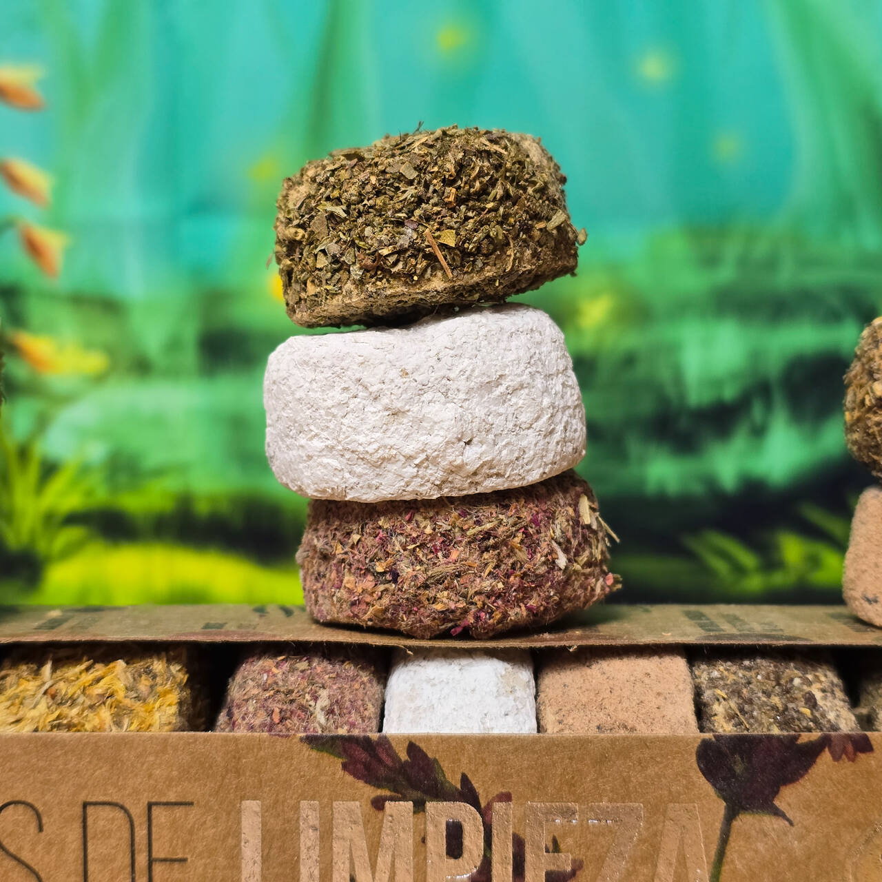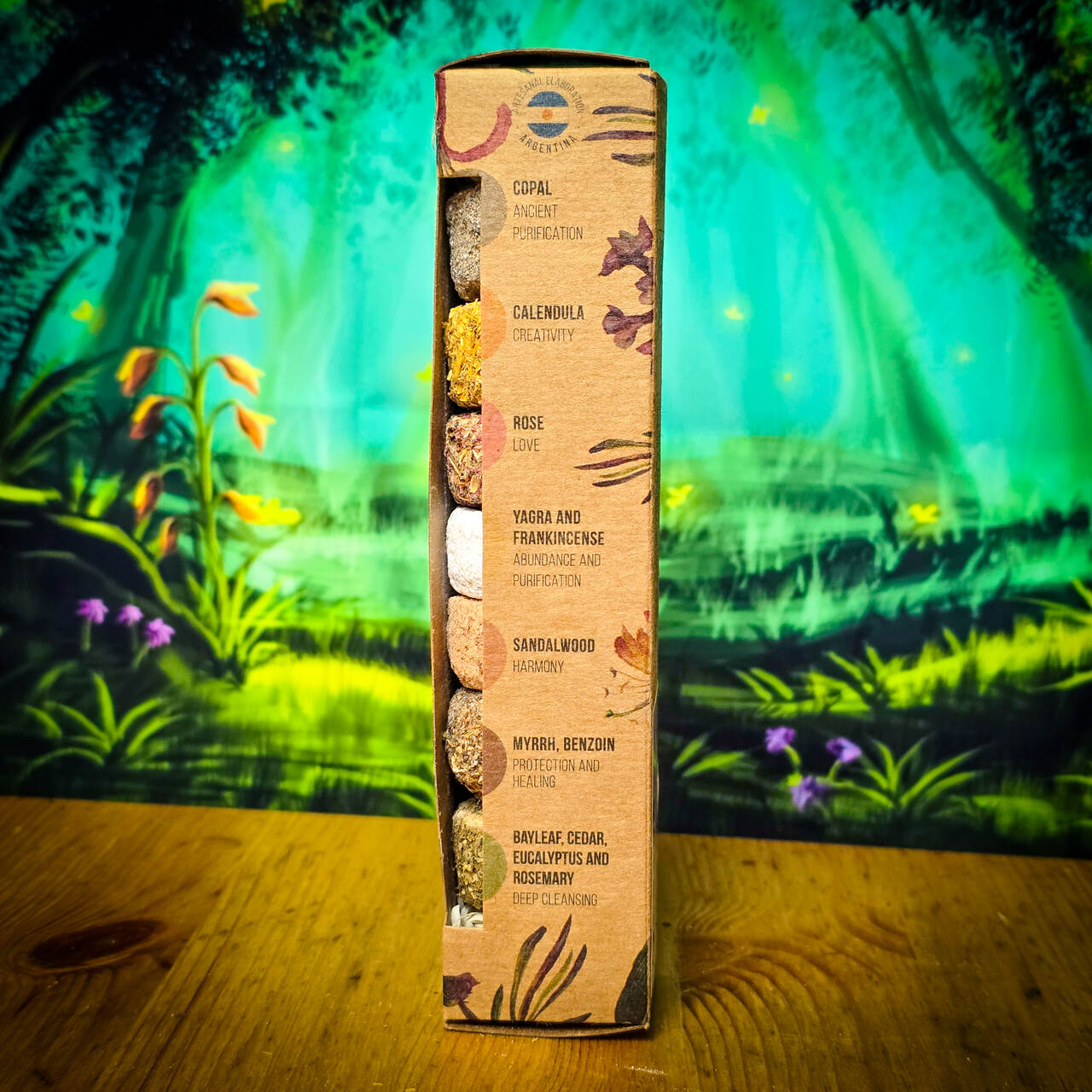 Kadzidła w kształcie pastylek do codziennego oczyszczenia. Każda pastylka to unikalny zestaw ziół i żywic. 7 sztuk w opakowaniu na cały tydzień rytuału oczyszczenia. Każda pastylka pali się około 10 minut.
