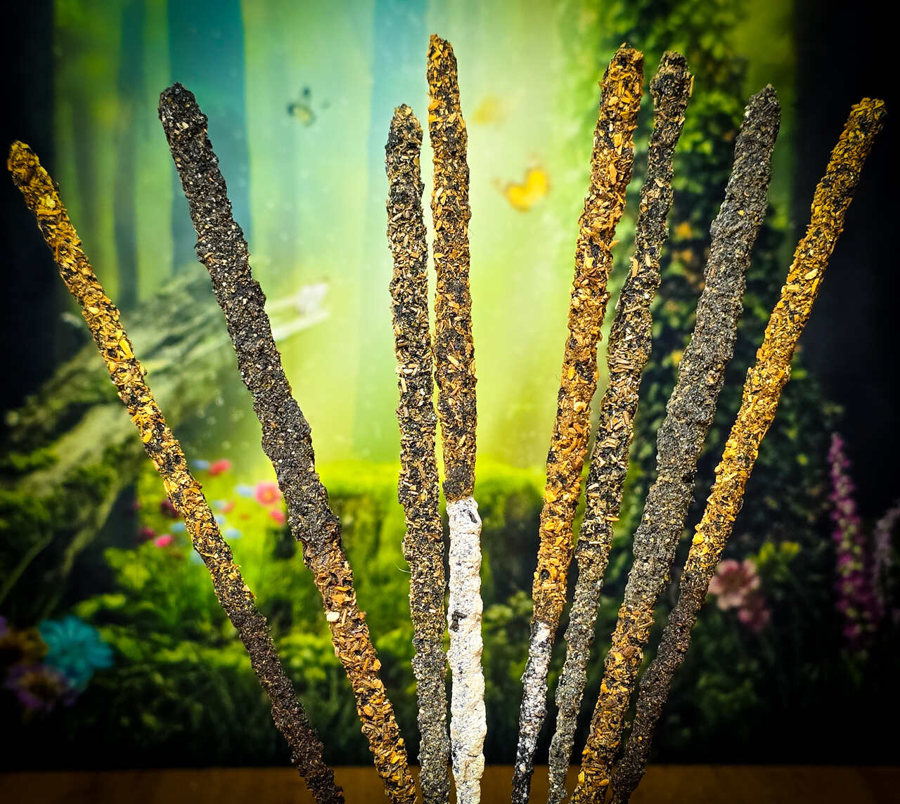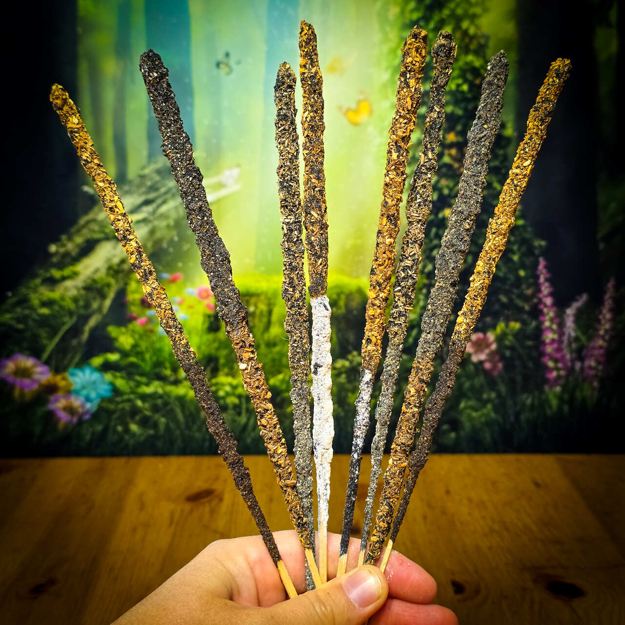 Potrójne kadzidła premium o długości 23 cm, z których każde pali się aż 1 godzinę. W opakowaniu znajdziesz 8 sztuk