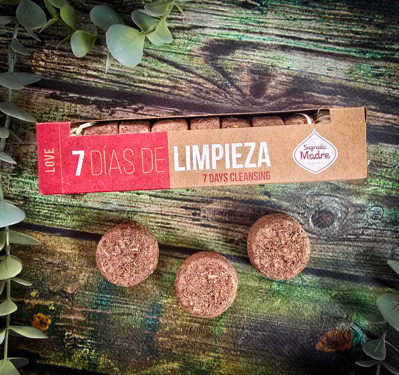 Kadzidła w formie tabletek od Sagrada Madre. W każdym opakowaniu jest 7 sztuk, każde kadzidło pali się 10 minut.