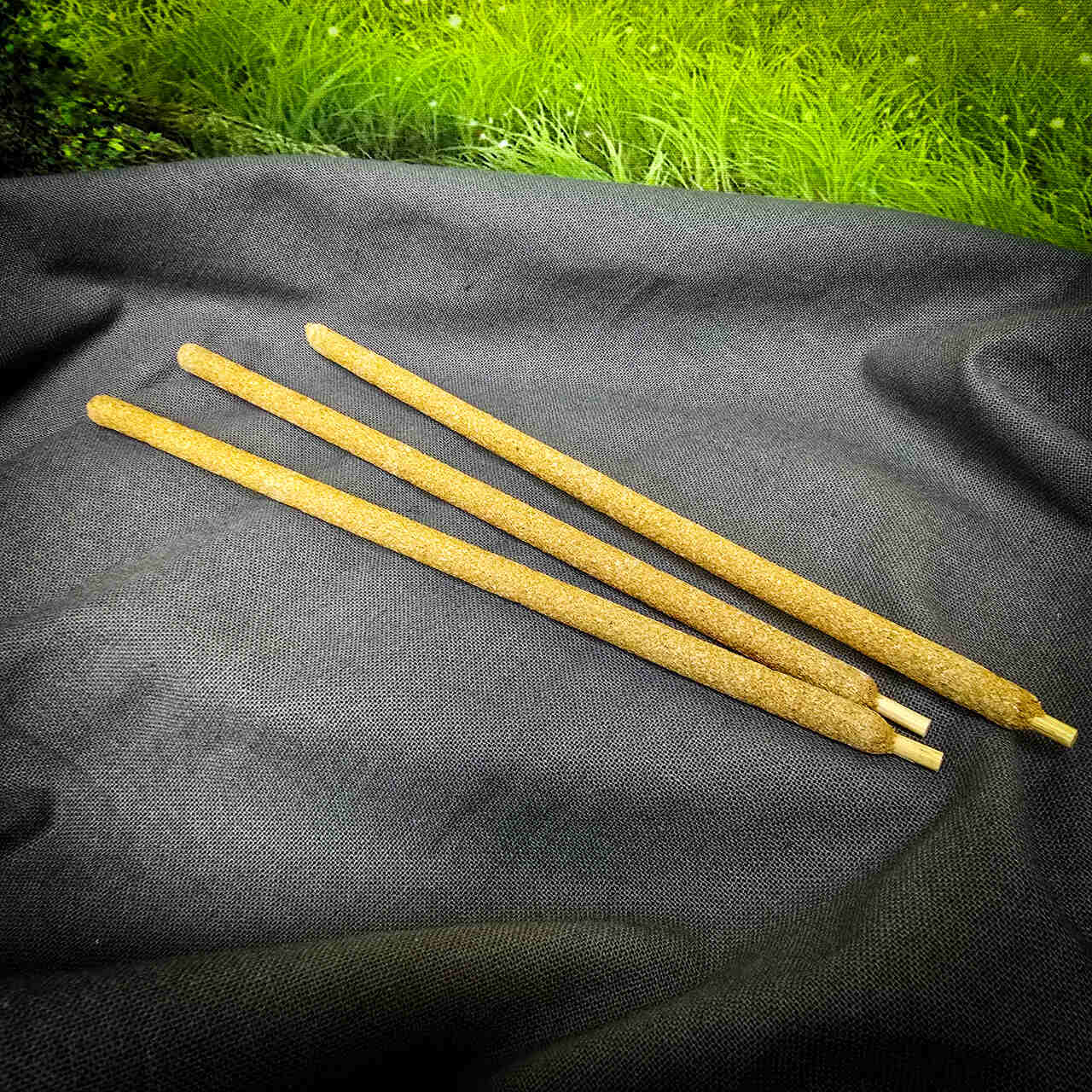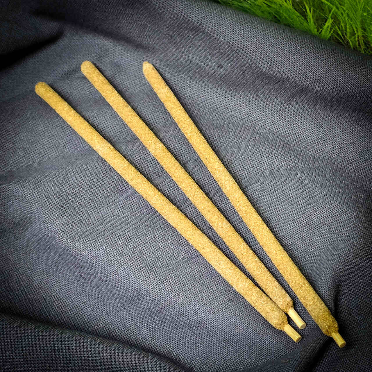 Palo Santo w formie łatwo spalającego się patyczka. Patyczek składa się wyłącznie ze zmielonego palo santo, bambusowego patyczka, naturalnego spoiwa oraz węgla drzewnego, które ułatwia spalanie. Zapach pozostaje ten sam podczas palenia stożka co przy spalaniu patyczka Palo santo.