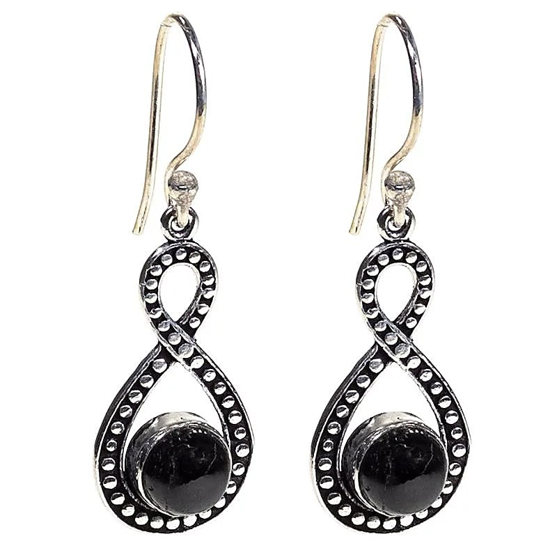 Kolczyki wykonane z mosiądzu z kamieniem czarny turmalin.