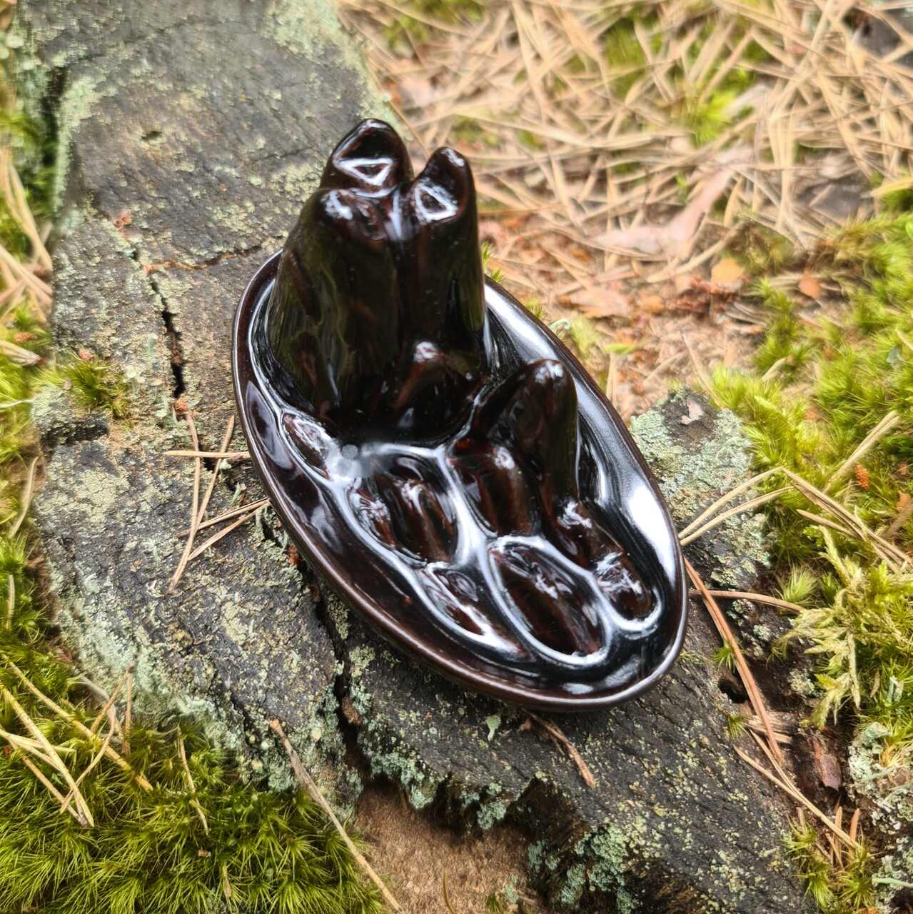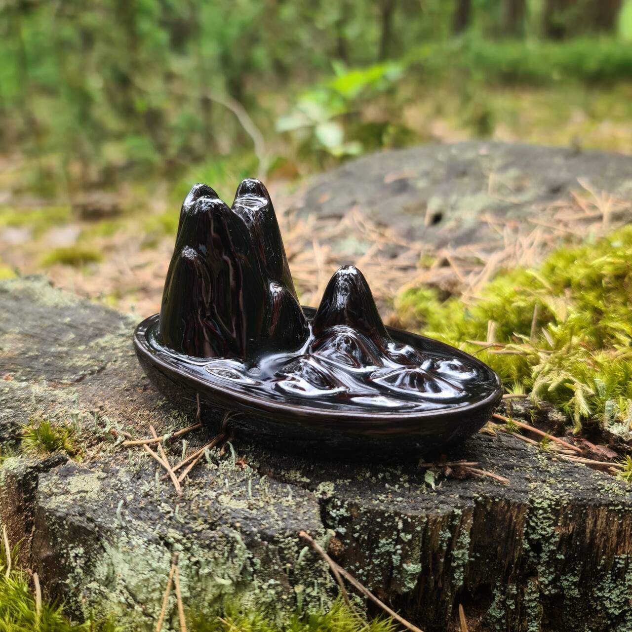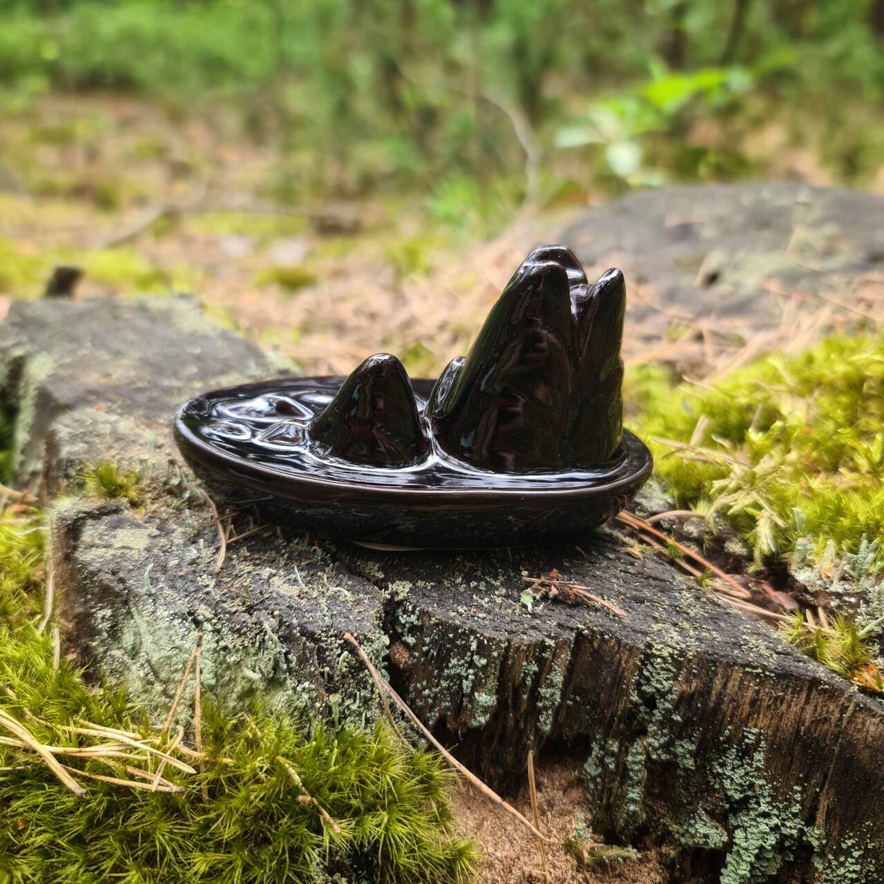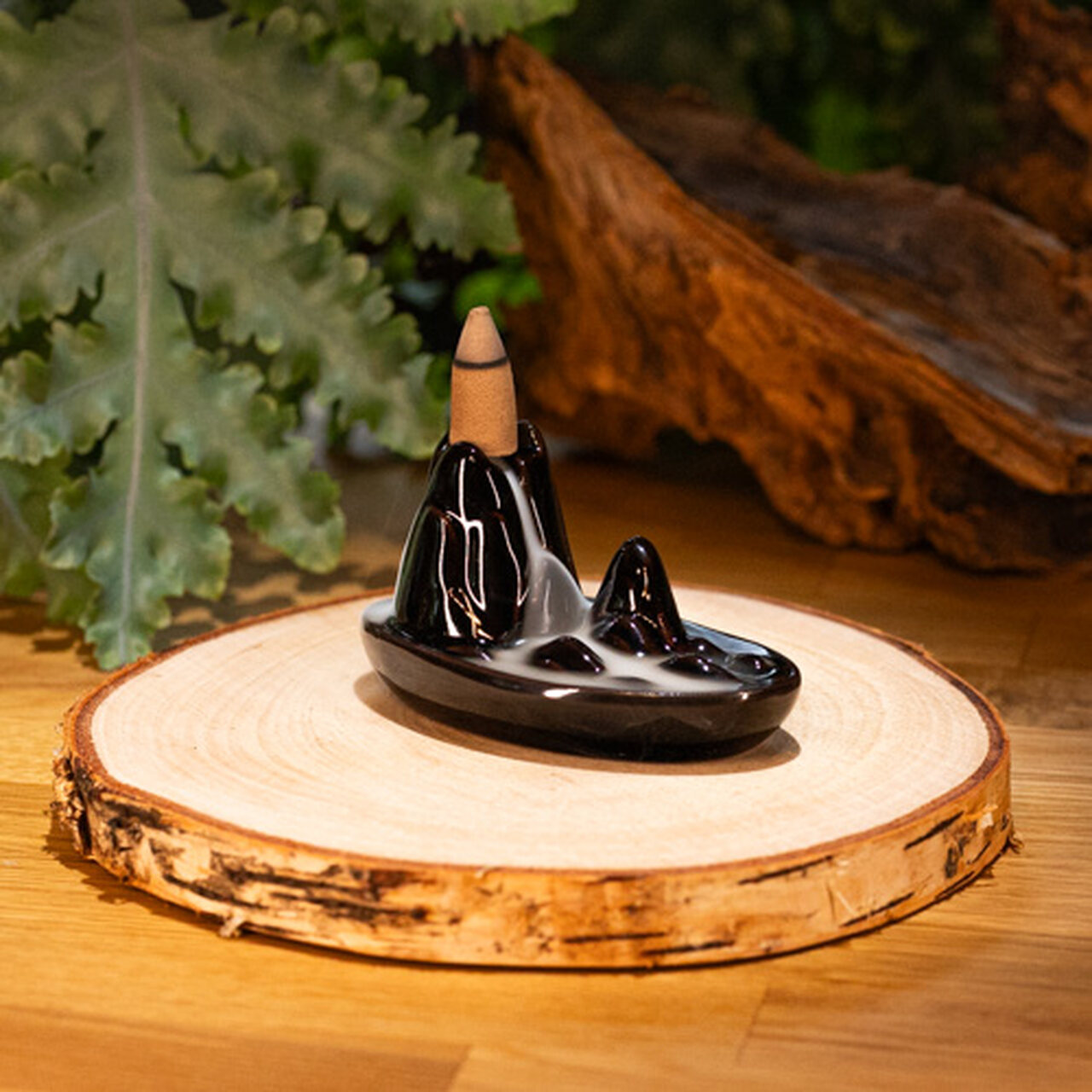 Kominek ceramiczny przeznaczony do palenia kadzideł typu backflow. Kadzidła te posiadają otwór, który wymusza odwrotną cyrkulację dymu. Używane w specjalnych kominkach dają niesamowity efekt płynącego w dół dymu. Niezwykle widowiskowe, sprawiają przyjemność wzrokowa jak i węchową.