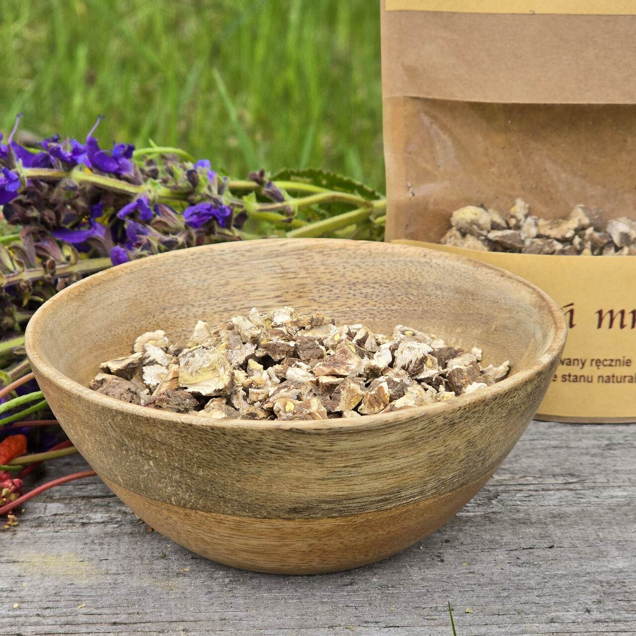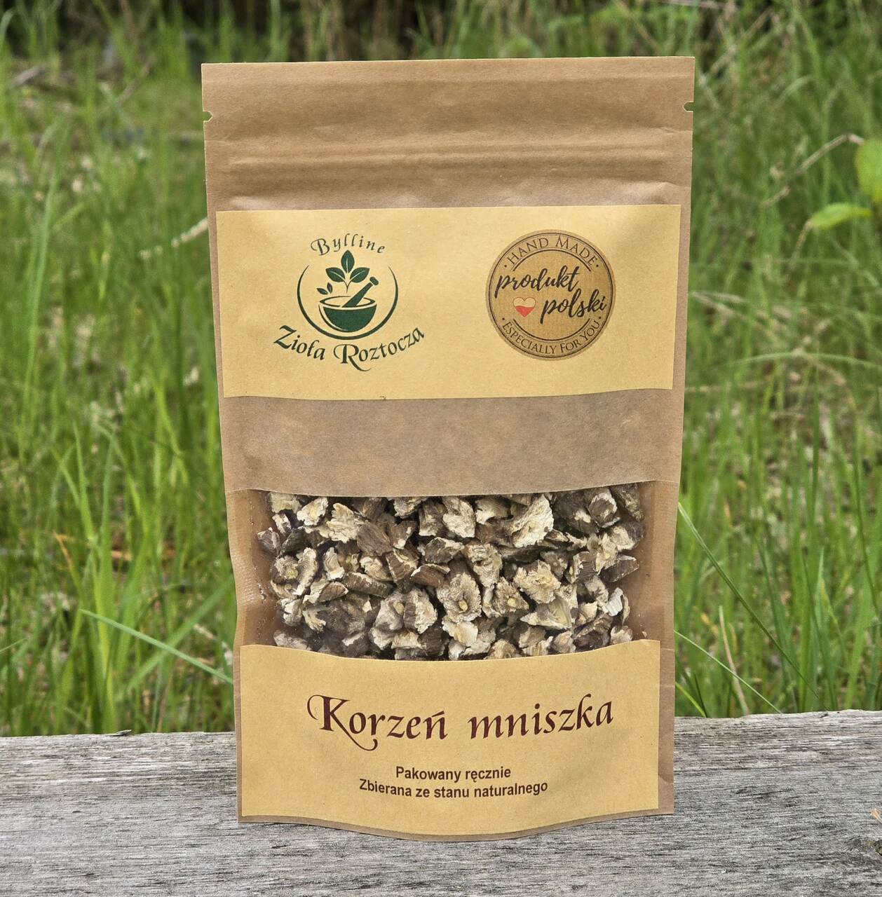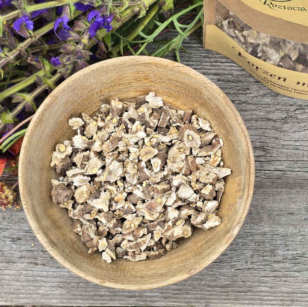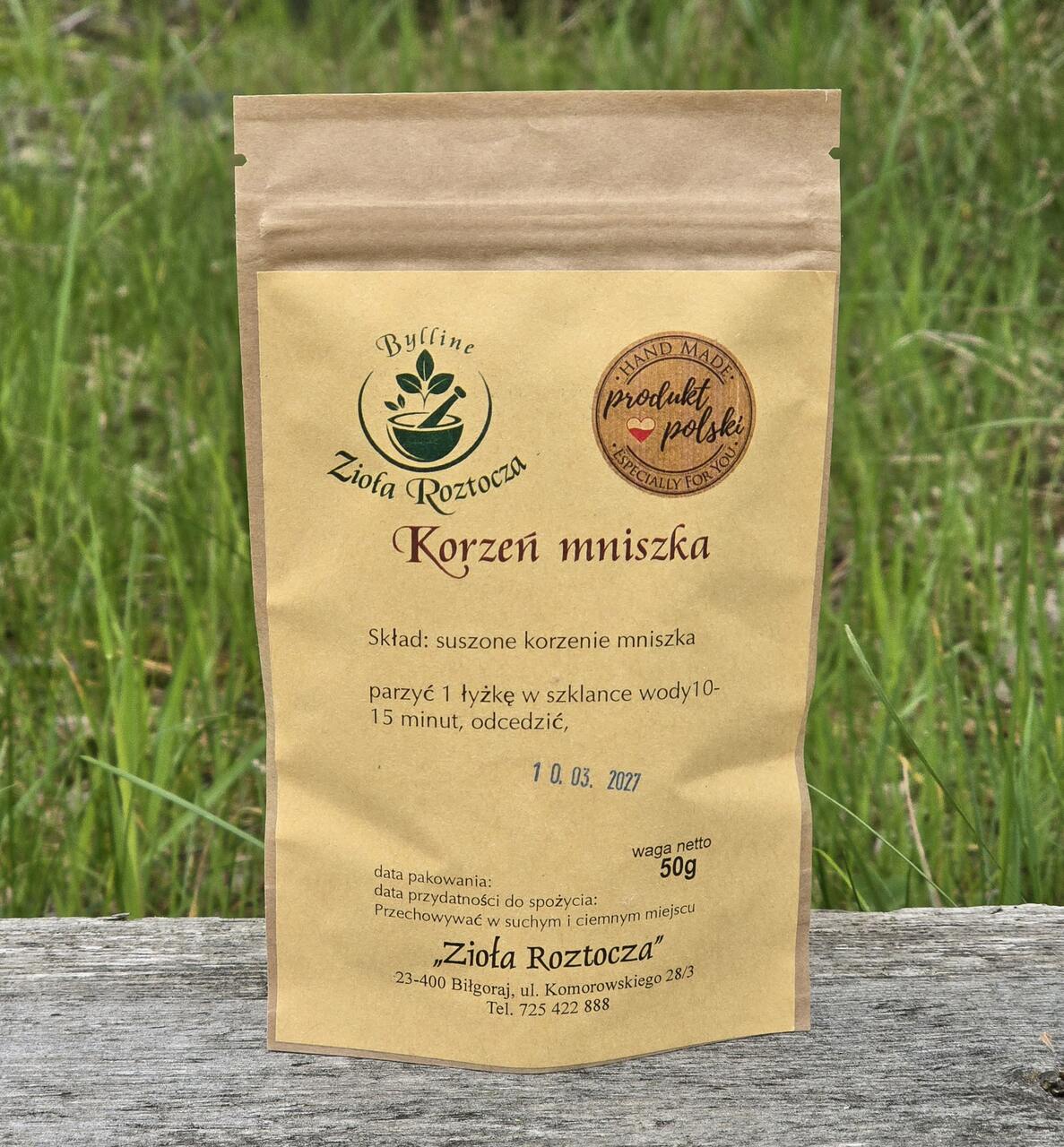 korzeń mniszka niesterylizowany. Opakowanie wielokrotnego użytku zawiera 50g roślin. Data przydatności do spożycia: 10.03.2027