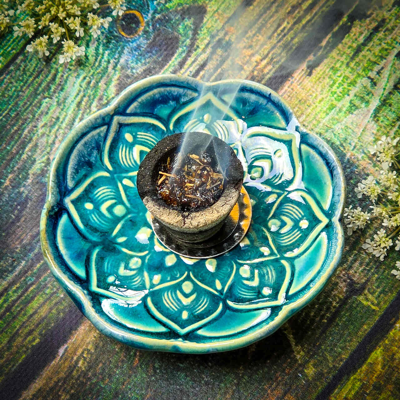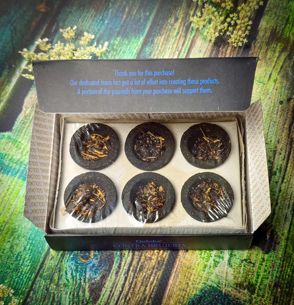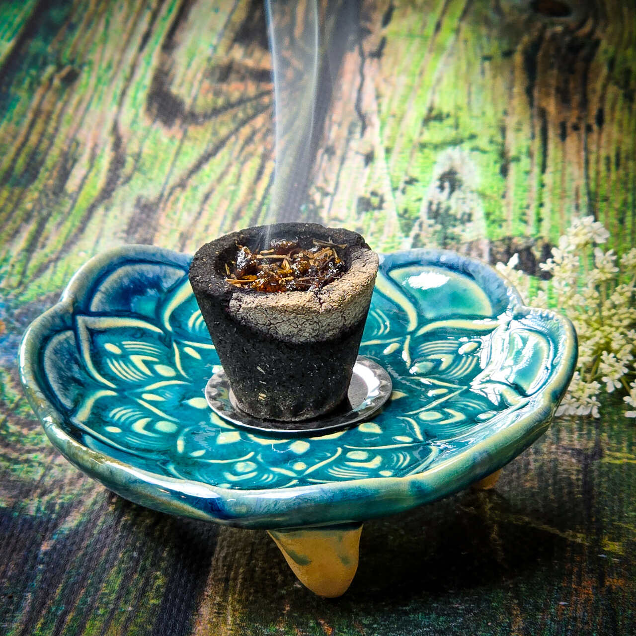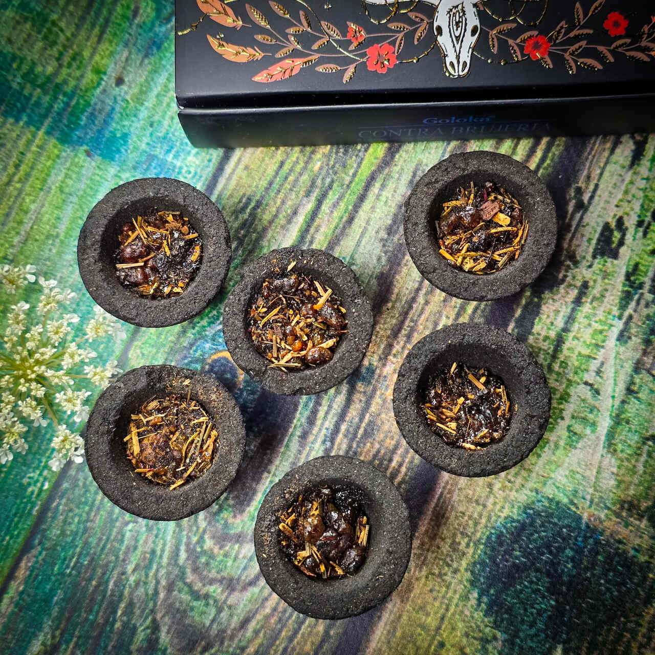 Kubeczki z węgla drzewnego wypełnione czystymi żywicami i ziołami. 6 sztuk w opakowaniu. Kubeczek pali się około pół godziny.