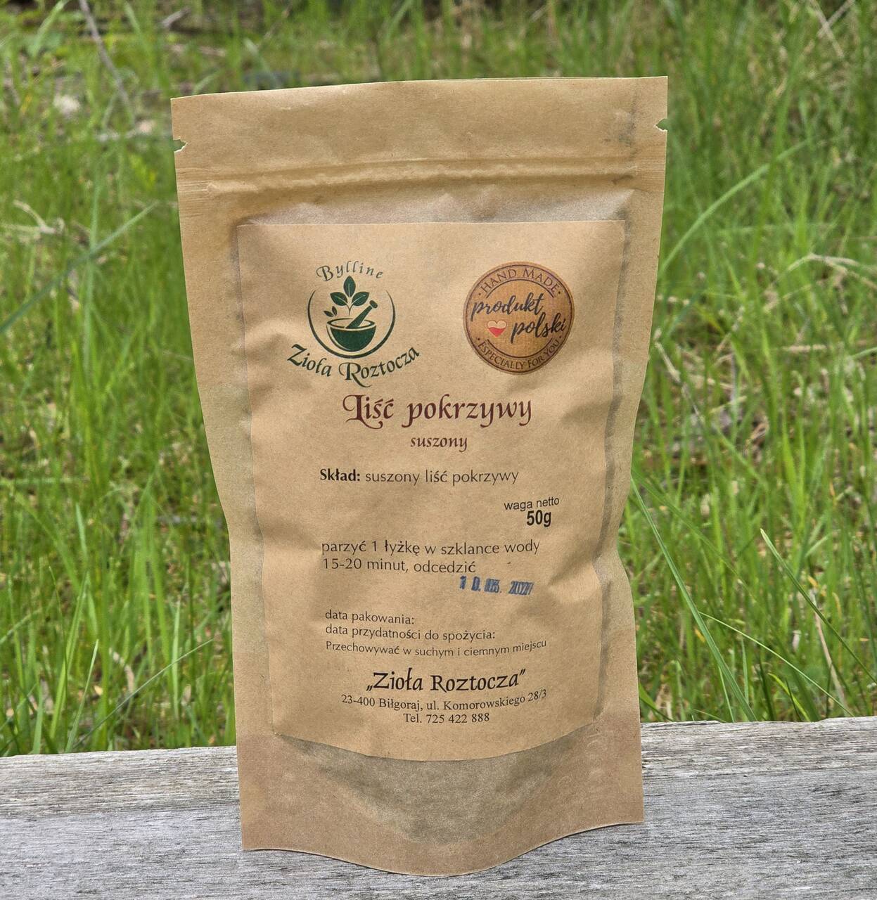 Liść pokrzywy niesterylizowany. Opakowanie wielokrotnego użytku zawiera 50g roślin. Data przydatności do spożycia: 10.03.2027