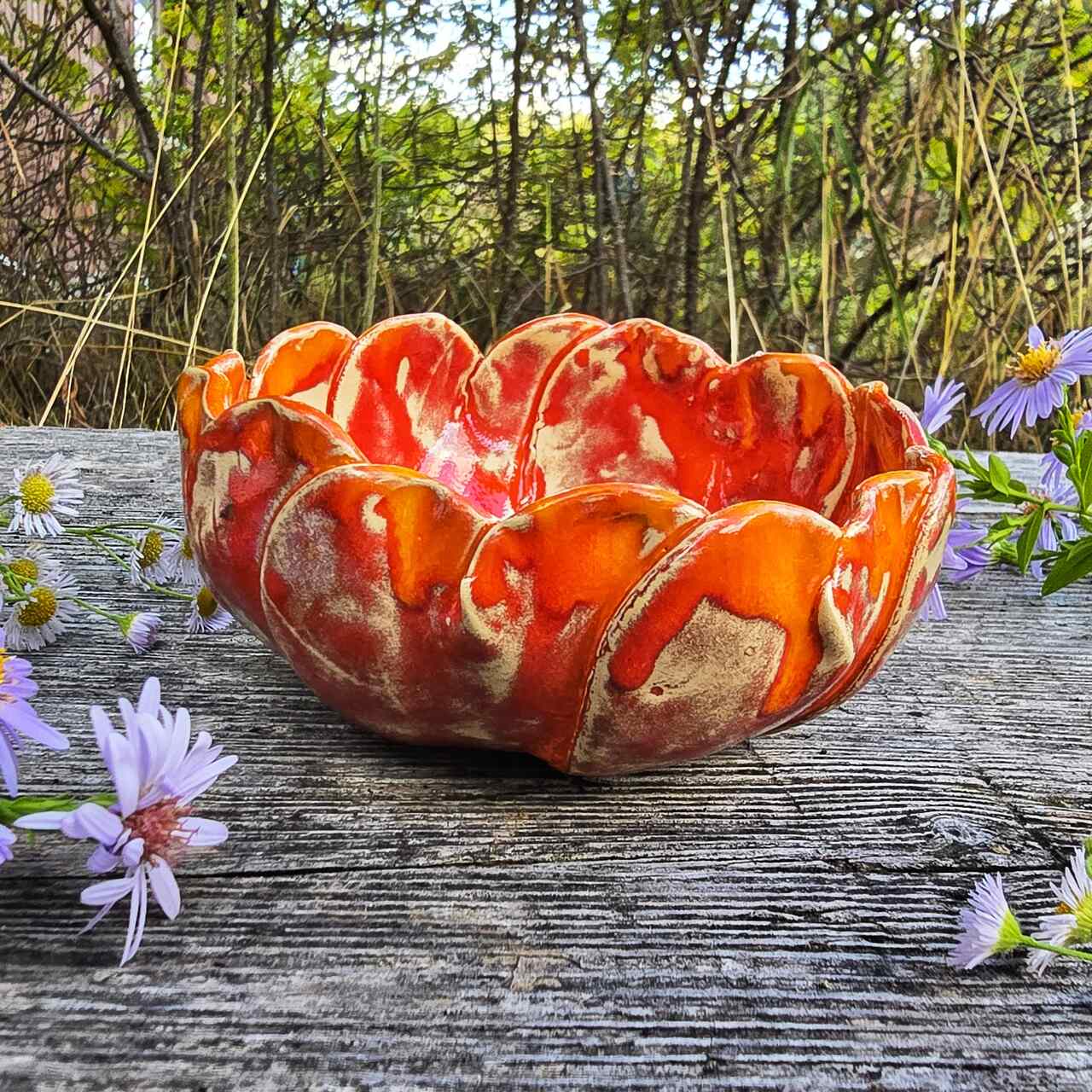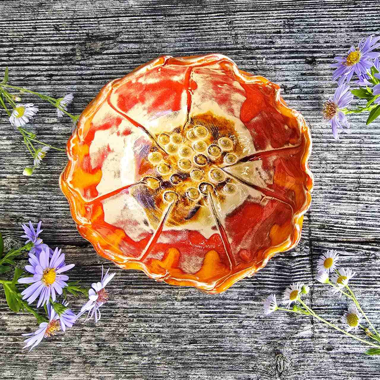 Miseczka wykonana ręcznie w pracowni Ceramika z Magicznego Domu. Kształt kwiatu, z wyraźnie uformowanymi płatkami. Szkliwiona. Przepiękny drobiazg, który nada wyjątkowego charakteru Twojemu wnętrzu.