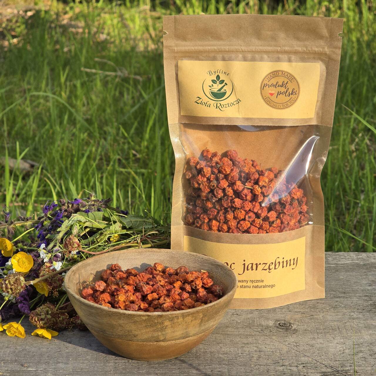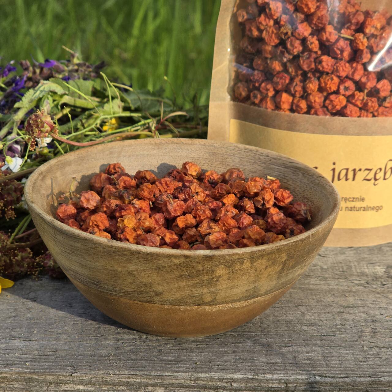 Owoce jarzębiny niesterylizowane. Opakowanie wielokrotnego użytku zawiera 100g roślin. Data przydatności do spożycia: 10.03.2027