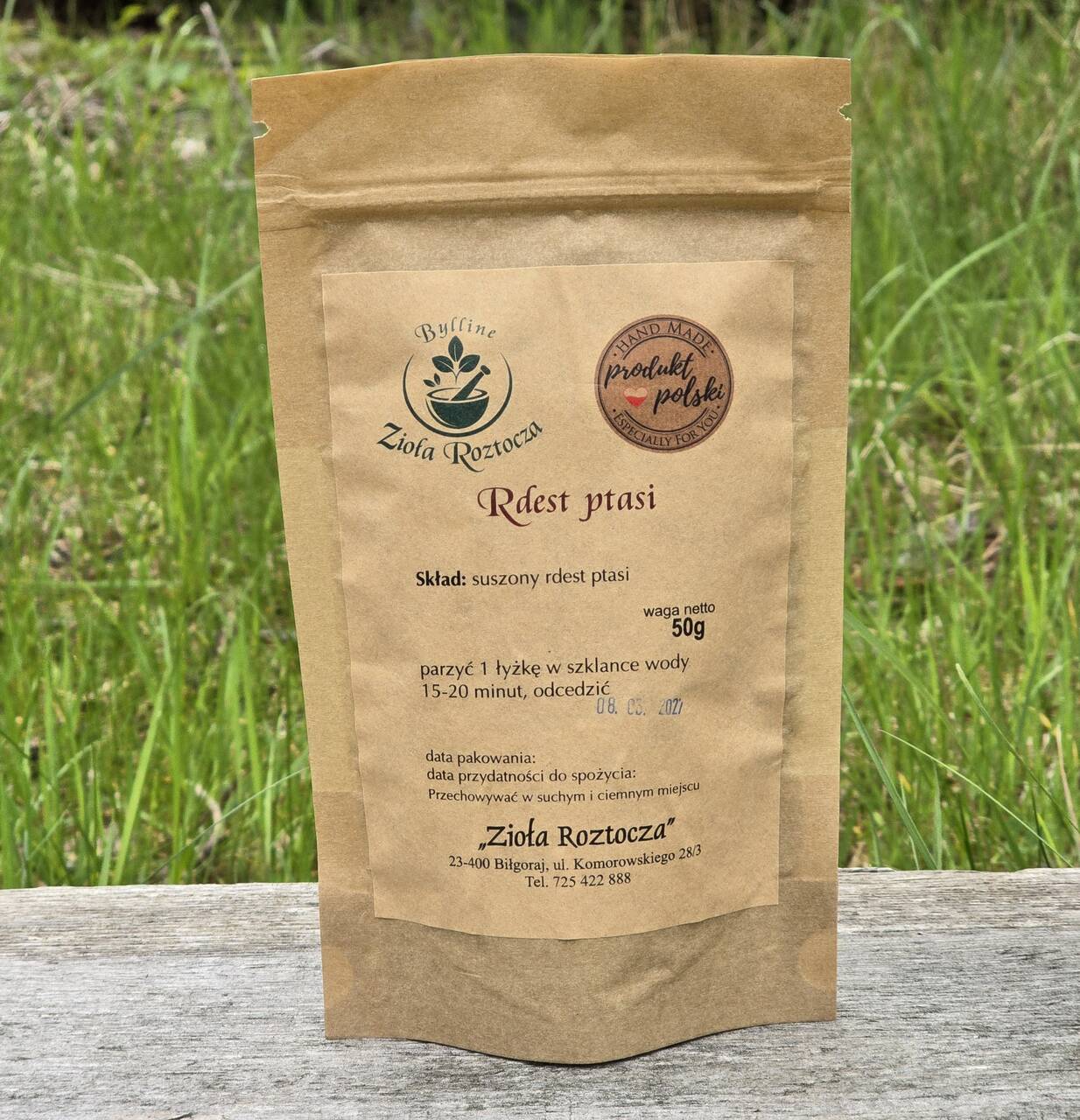 Rdest ptasi niesterylizowany. Opakowanie wielokrotnego użytku zawiera 50g roślin. Data przydatności do spożycia: 10.03.2027