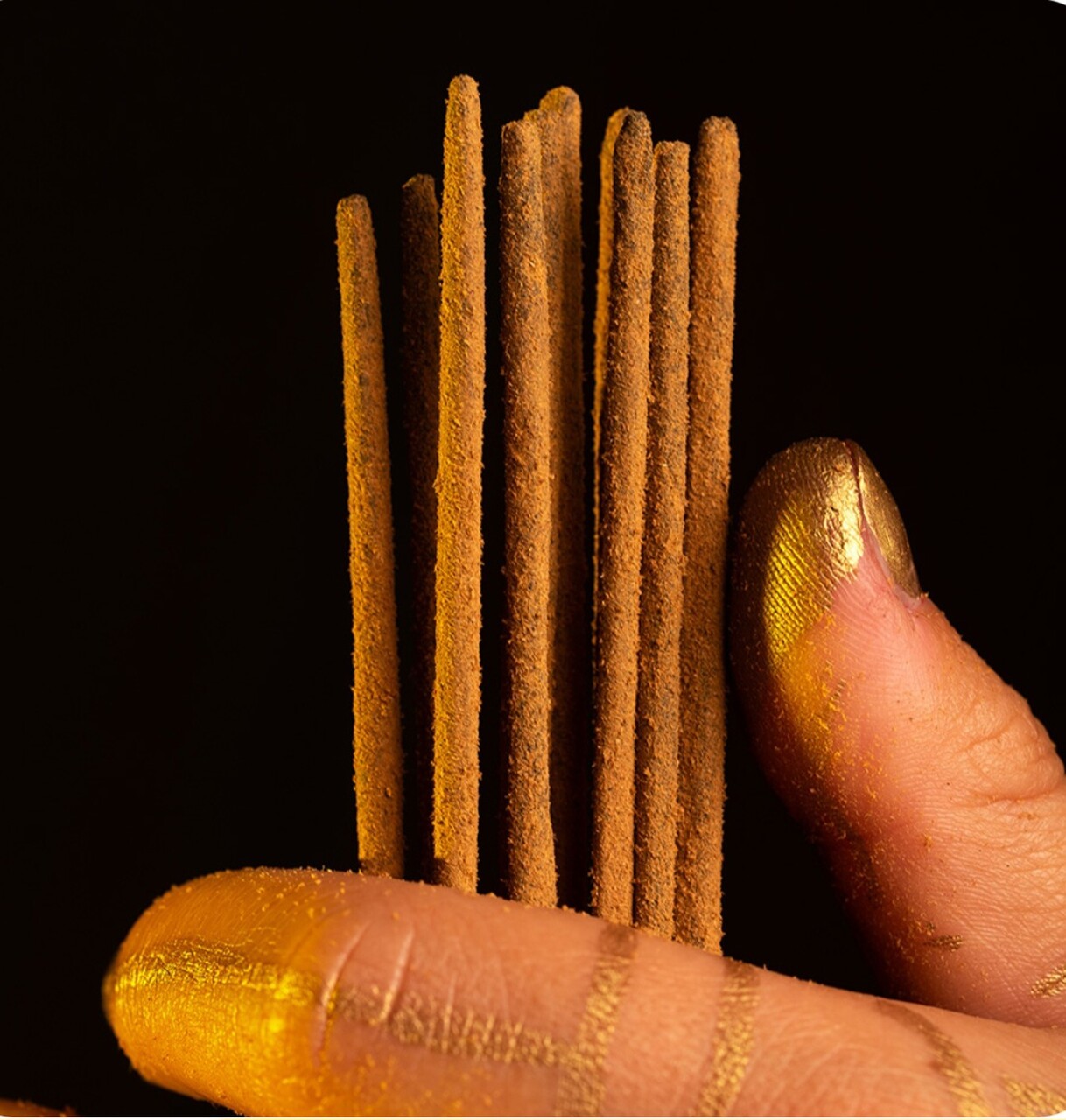 proszek z drewna indyjskiego, zioła, olejki eteryczne, skoncentrowane olejki aromatyczne, naturalny spoiwo, pałeczki bambusowe.
