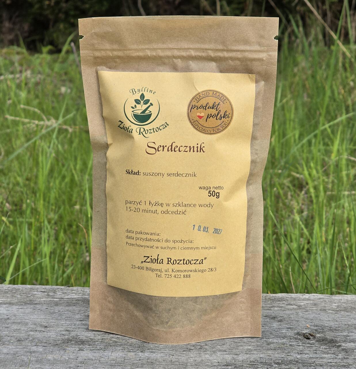 Serdecznik niesterylizowany. Opakowanie wielokrotnego użytku zawiera 50g roślin. Data przydatności do spożycia: 10.03.2027