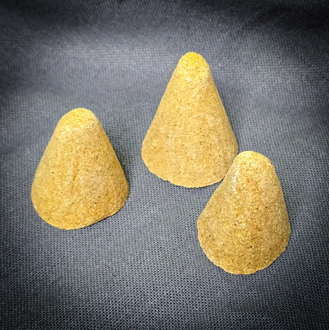 Palo Santo w formie łatwo spalającego się stożka. Stożek składa się wyłącznie ze zmielonego palo santo, naturalnego spoiwa oraz węgla drzewnego, które ułatwia spalanie. Zapach pozostaje ten sam podczas palenia stożka co przy spalaniu patyczka Palo santo.