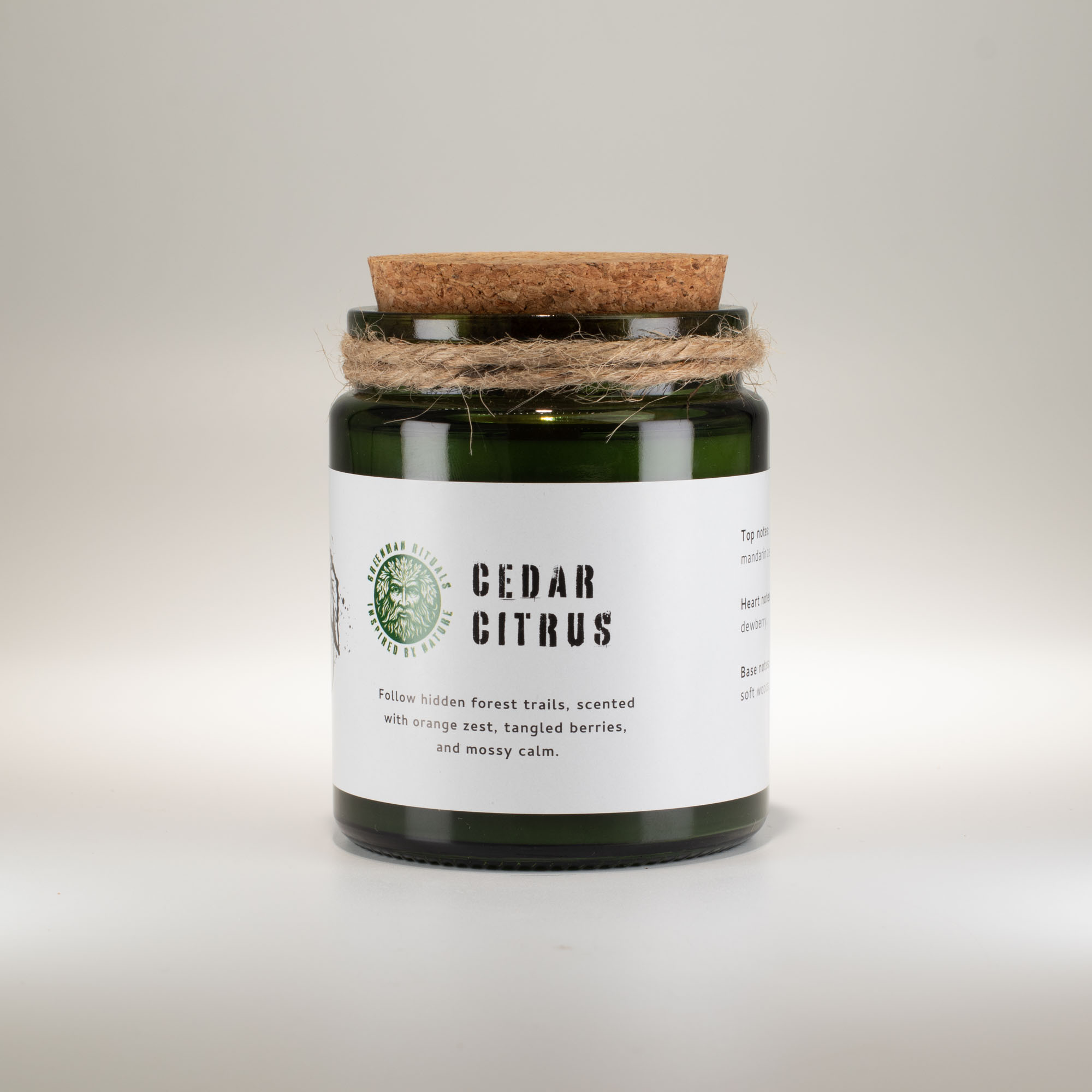 Ręcznie wlewana świeca z czystego wosku sojowego, w pełni wegańska i wolna od parafiny. Drewniany knot delikatnie trzaska podczas palenia, tworząc przyjemną, energetyzującą atmosferę. Cytrus Cedrowy to świeży, owocowo-drzewny zapach, który łączy soczystą cytrusową lekkość z ciepłem naturalnego drewna.