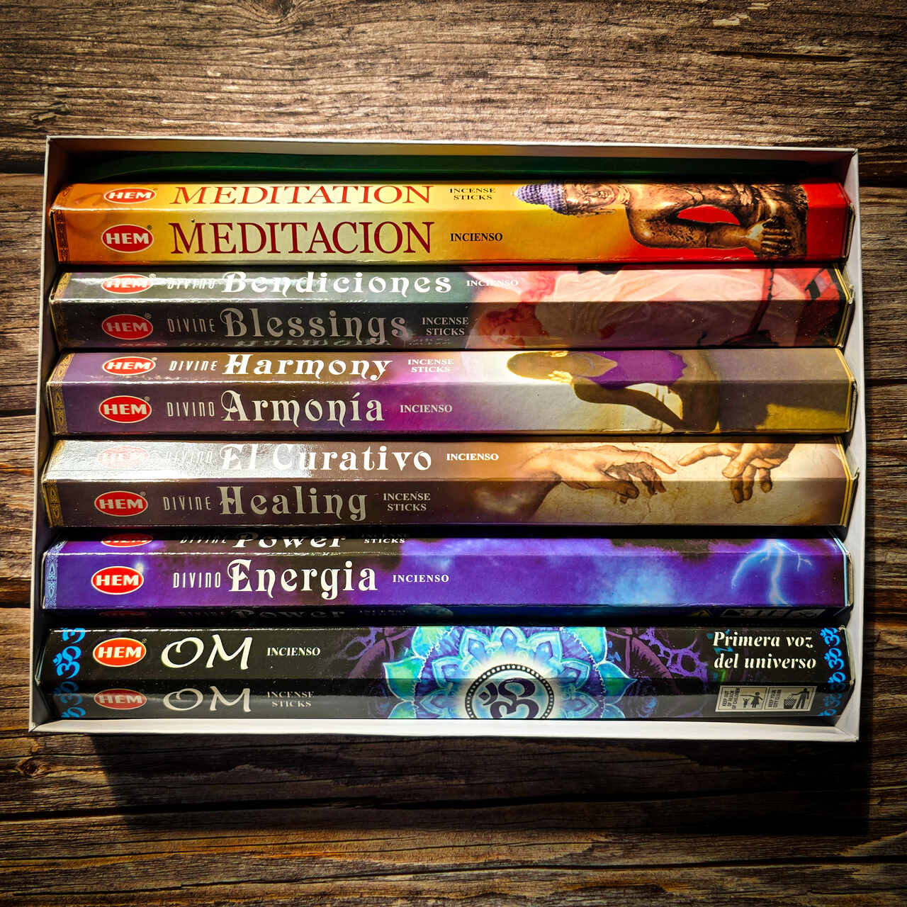 Zestaw kadzidełek skomponowany w sześciu różnych intencjach. Znajdziesz tu 6 różnych opakowań po 20 szt patyczków: