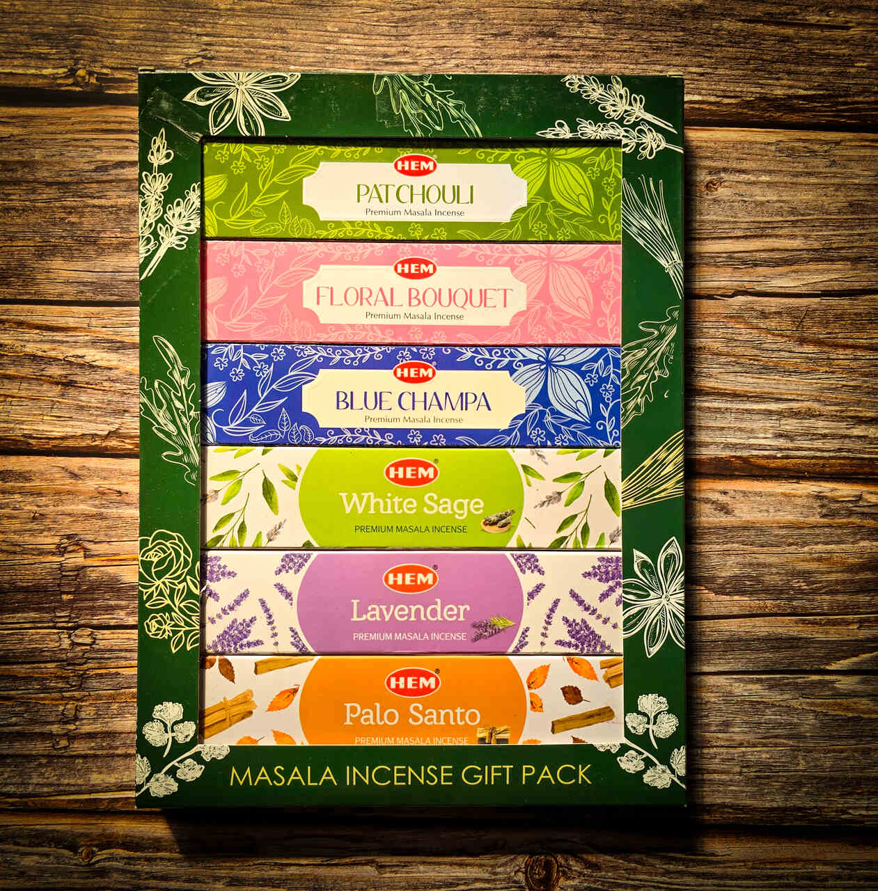 Zestaw kadzidełek skomponowany z sześciu różnych zapachów. Znajdziesz tu 6 różnych opakowań po 15g patyczków oraz podstawkę: