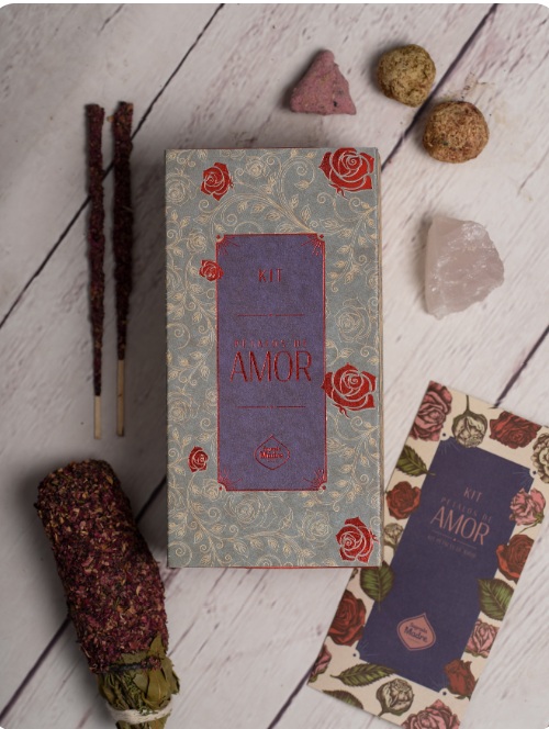 Zawartość: 1 kadzidło różane, 2 perły z różą i kadzidłem, 1 trójkąt z różą i kadzidłem, 1 amulet z kwarcu różowego, 2 kadzidła z różą i kadzidłem, 1 ulotka wyjaśniająca.
