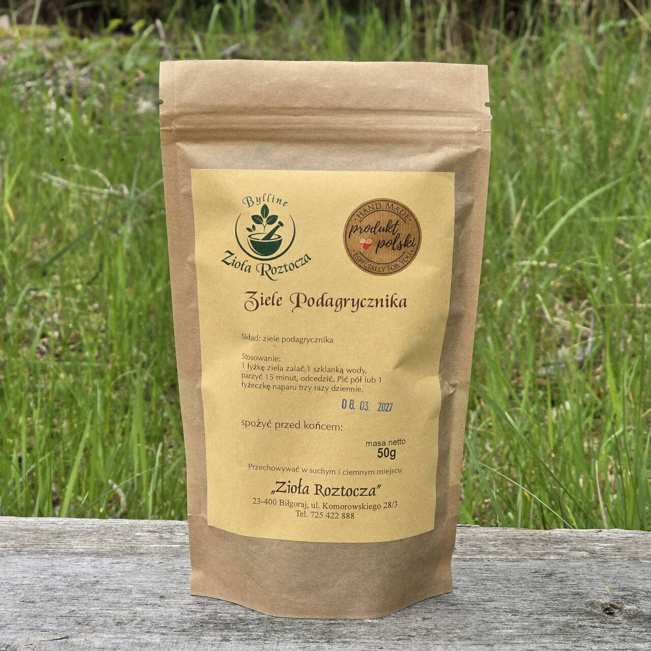 Podagrycznik niesterylizowany. Opakowanie wielokrotnego użytku zawiera 50g roślin. Data przydatności do spożycia: 10.03.2027